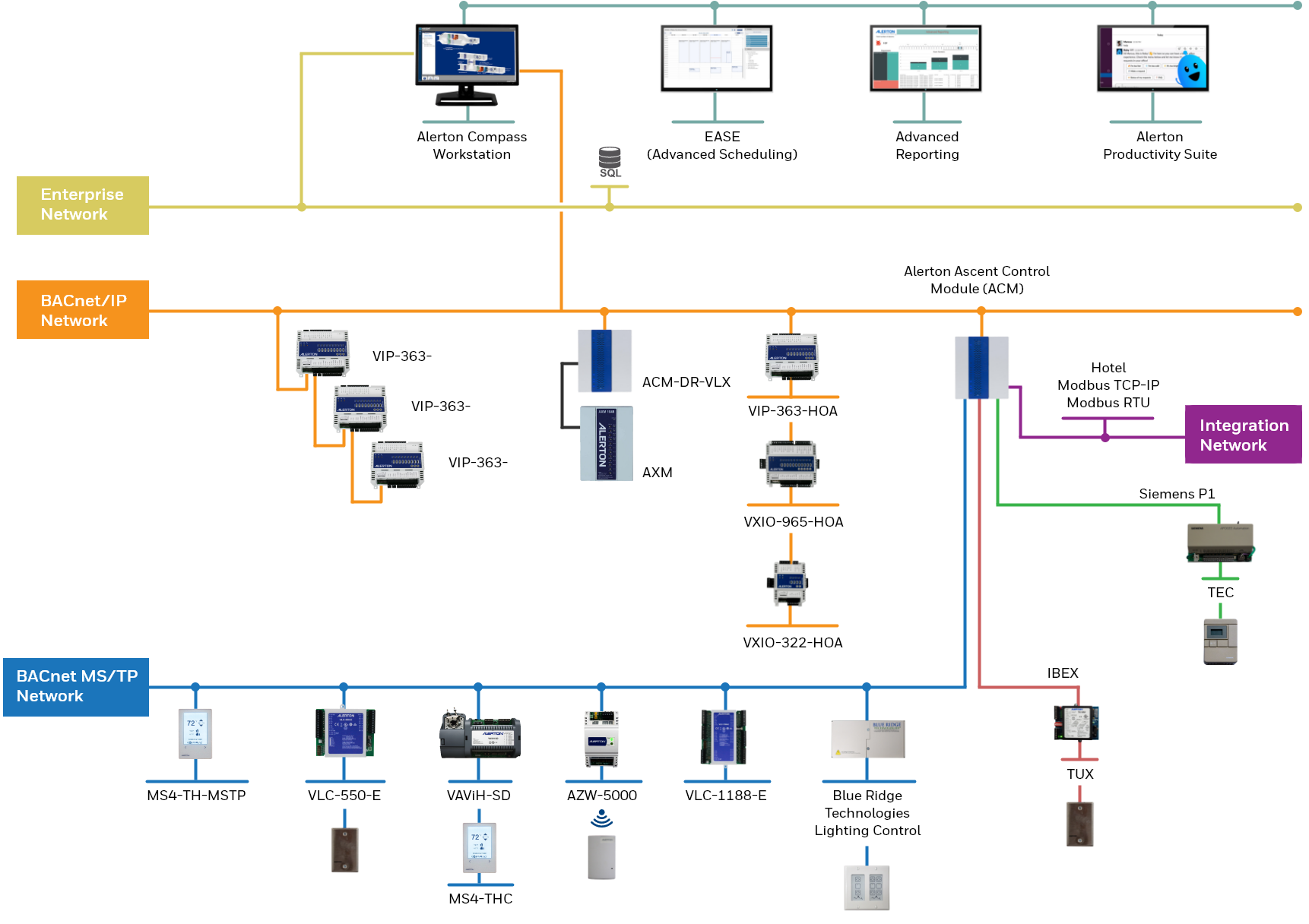 With Alerton systems, HVAC, lighting, irrigation and many other property functions can be easily controlled; while wired and wireless monitoring of occupancy, entry access, mini-bar and HVAC equipment is also available. System integration with Alerton results in centralized and comprehensive building management, making the facility comfortable, safe and easy to maintain.